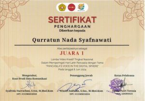 Qurratun Nada Syafnawati Mahasiswa Psikologi UHAMKA berhasil meraih juara 1 lomba video Kreatif KRIYATMAKA 2024